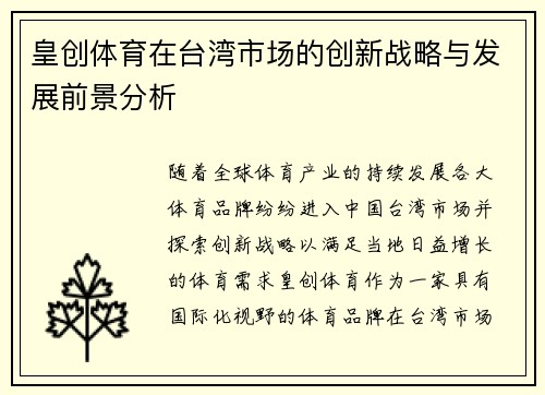 文章摘要:本文将深入探讨皇马集团如何通过打造全球足球产业新生态,推动体育与娱乐跨界融合,从而引领全球体育产业的发展趋势。文章首先介绍了皇马集团的背景及其在全球足球产业中的重要地位,接着从四个方面详细分析了其如何通过创新的商业模式、先进的技术应用、跨界合作以及全球品牌影响力,推动全球足球产业的新变革。...